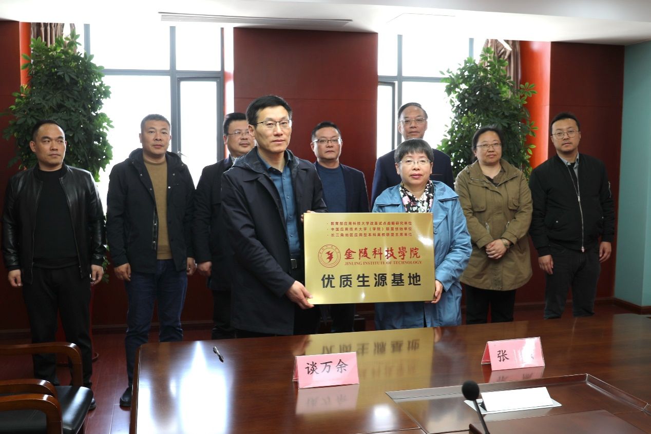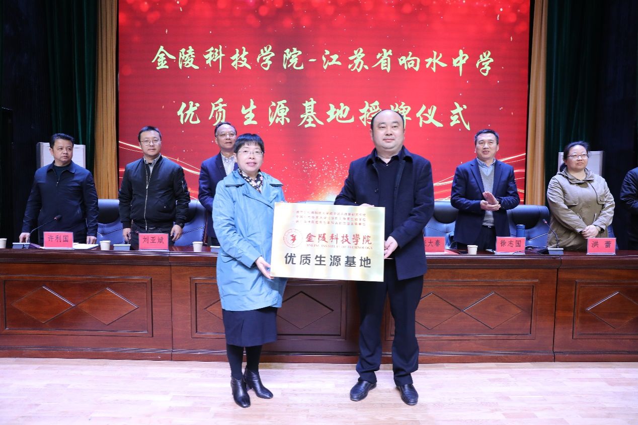 张燕和三所中学校领导进行了友好交流,相互介绍了各自学校的发展建设情况。张燕代表学校与江苏省响水中学党委书记、校长张大春 ,江苏省上冈高级中学党委书记、校长谈万余分别在“金陵科技学院优质生源基地合作协议书”上签字,并举行了“金陵科技学院优质生源基地”授牌仪式。签约仪式结束后,张燕给三所中学的高三年级和高二年级学生作了《“五融两化信创特色”的软件工程人才培养创新与实践》的报告,鼓励同学们努力学习,立志科技报国,将来为国家的信创产业发展贡献青春力量。