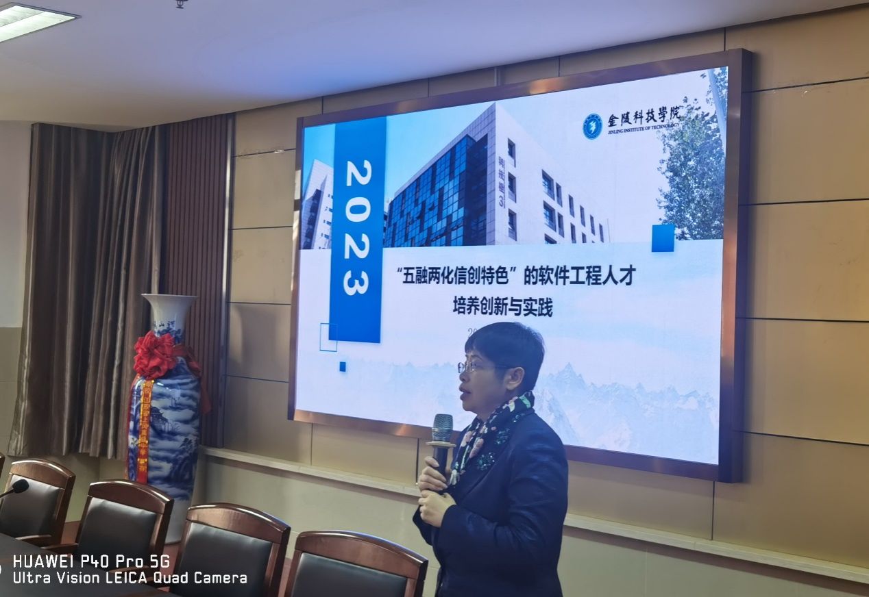 招生与就业指导处处长闵光琛向三所学校领导介绍了我校的招生、就业和在校大学生创新创业等情况。