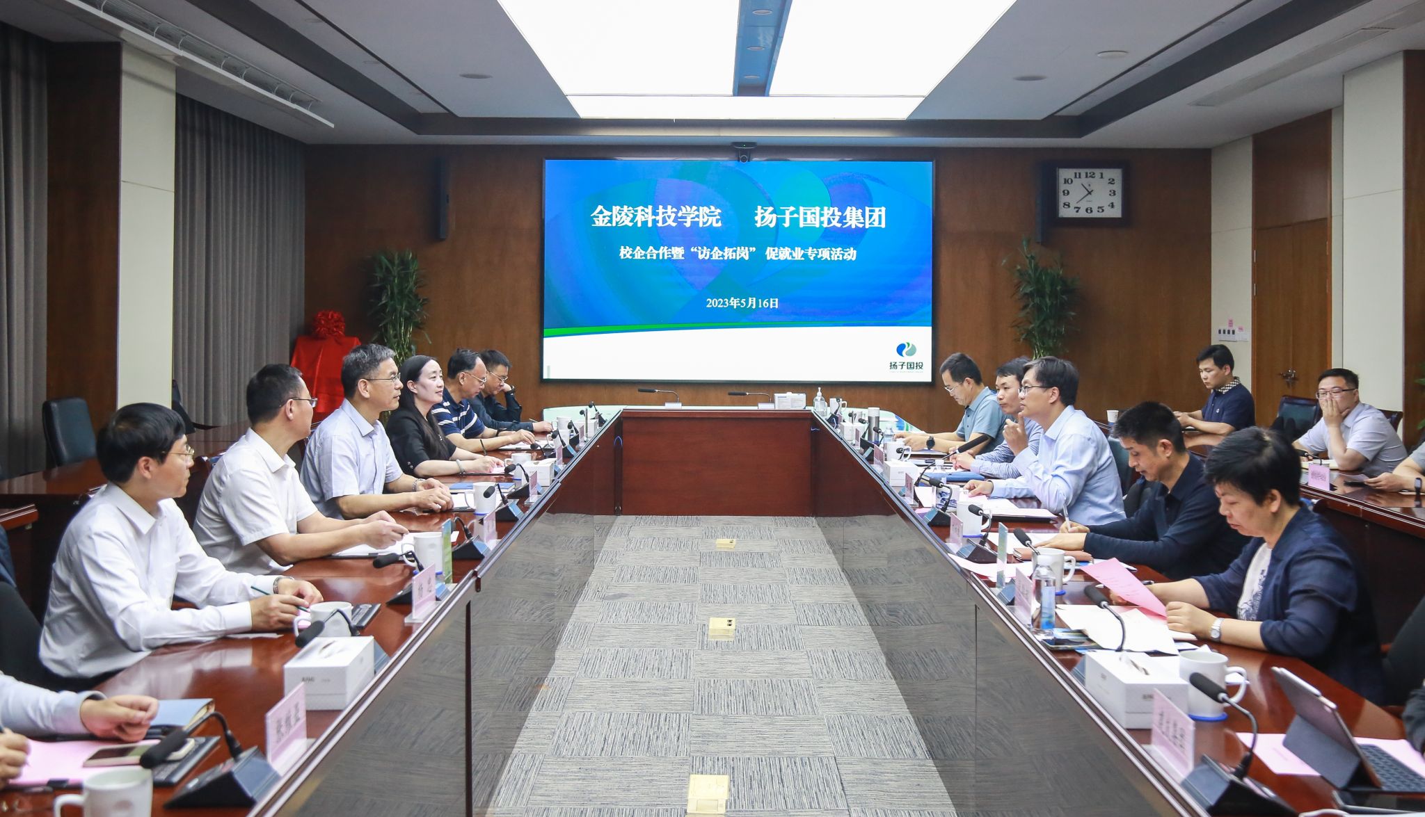 5月16日上午,校党委书记刘志远、副校长顾晓燕及党委办公室、招生与就业指导处、智能科学与控制工程学院、建筑工程学院、人文学院主要负责人到市属国有企业——南京扬子国资投资集团访企拓岗,推进校企合作。南京扬子国资投资集团总经理、党委副书记毛强、党委副书记刘妙雄及相关部门、成员企业主要负责人热情接待了我校一行。