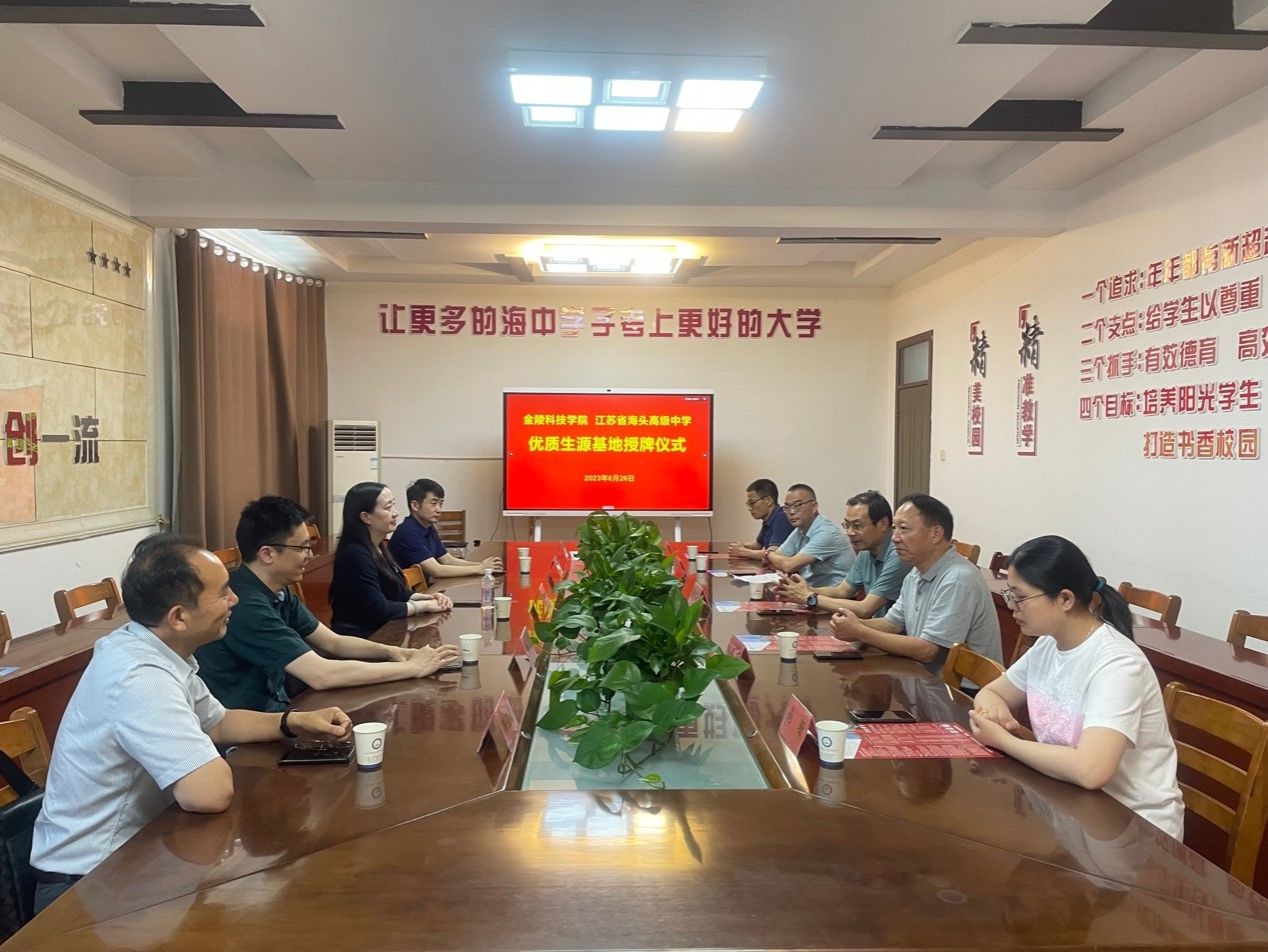 6月26日下午,我校与江苏省海头高级中学的优质生源基地签约授牌仪式在海头高级中学举行。副校长顾晓燕、商学院党委书记周骏,海头高级中学党委书记、校长刘兴法及副校长张雷、张俭平、董自展参加仪式。