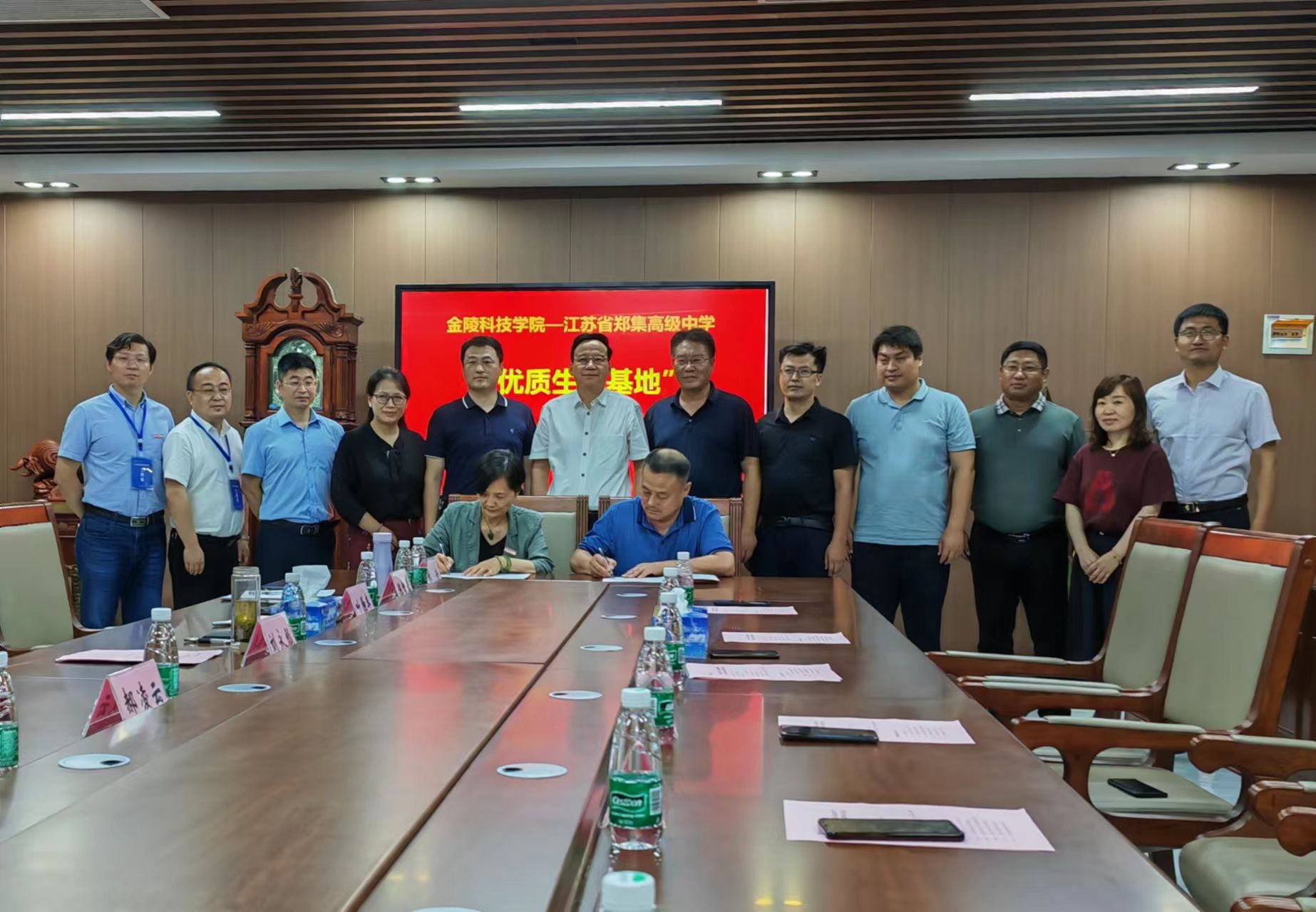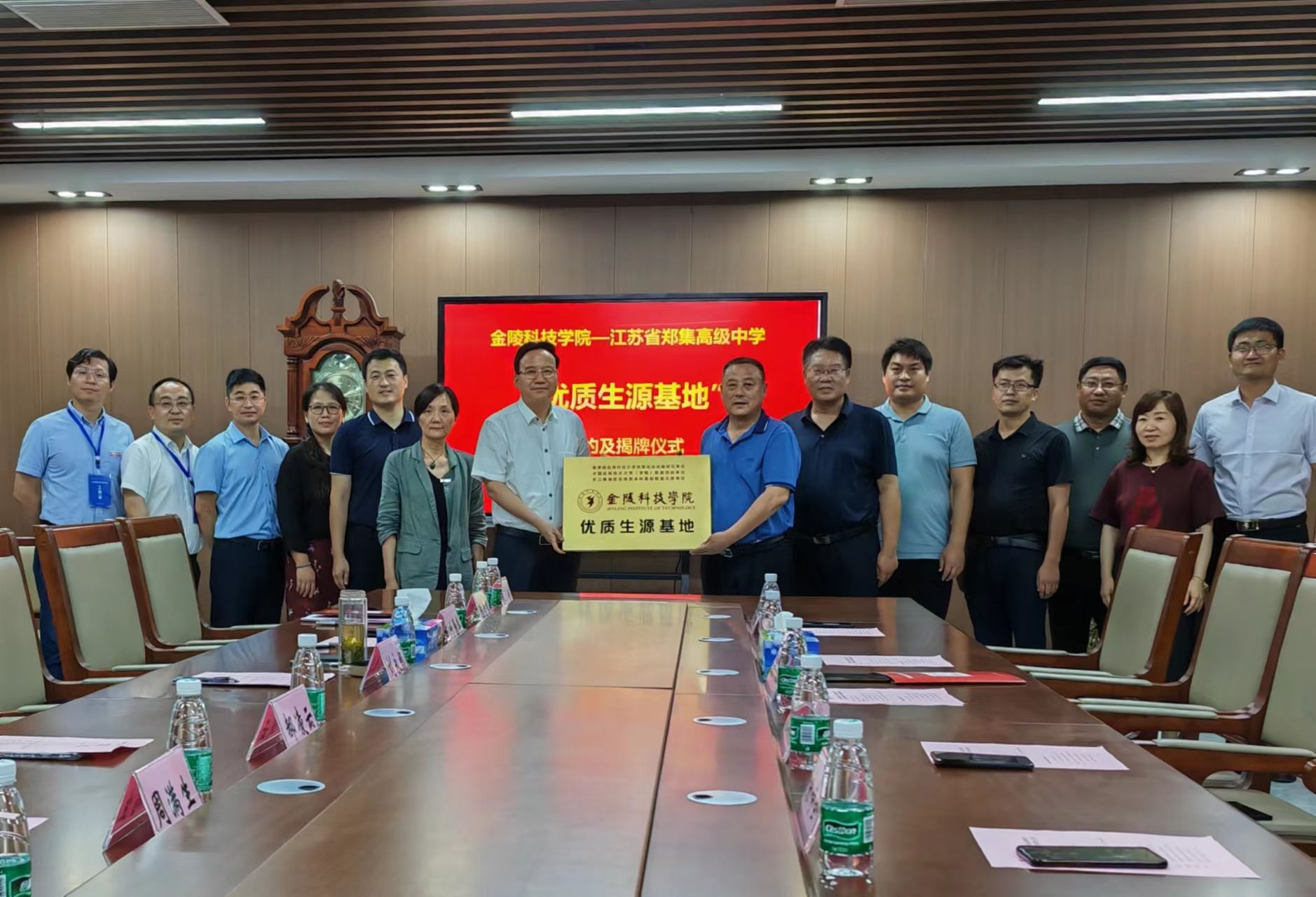 材料工程学院院长郝凌云代表学校与时敬签订《金陵科技学院优质生源基地合作协议书》,刘永彪向江苏省郑集高级中学授牌“金陵科技学院优质生源基地”。