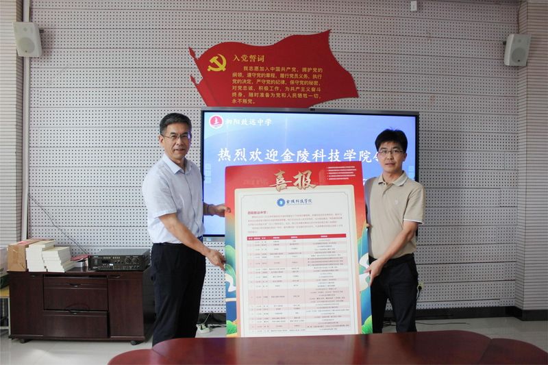 刘志远向学校生源基地江苏省泗阳中学和江苏省泗阳致远中学发放了毕业生在金科院学习期间的获奖喜报。招生与就业指导处处长闵光琛汇报了2023年学校在宿迁市的招生安排,并现场进行了政策解读和咨询。