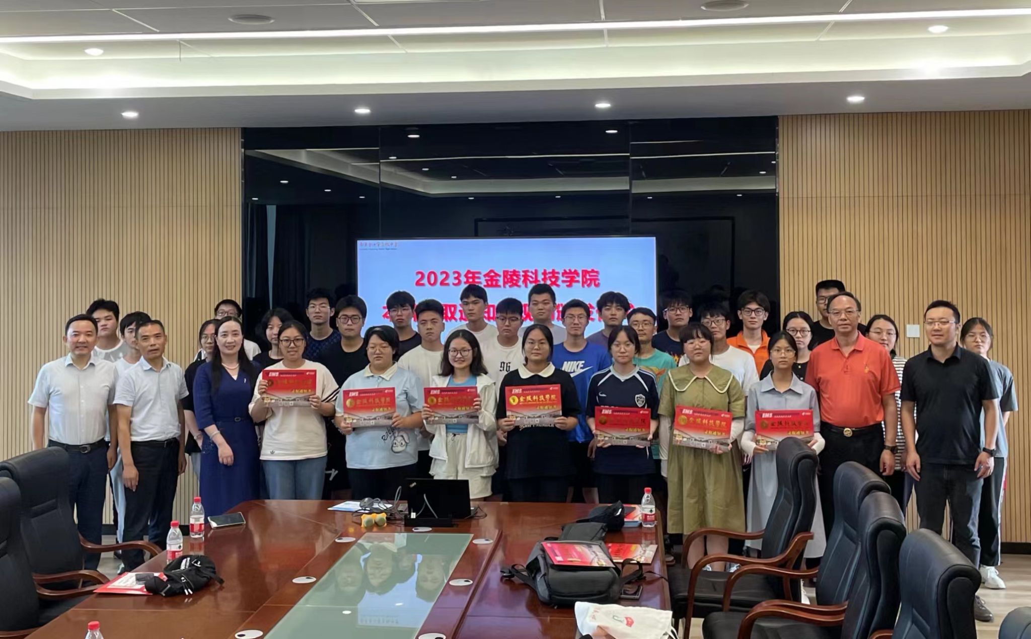 最后,顾晓燕副校长向张格波副校长交接了金陵科技学院高考录取江宁高级中学新生喜报,并亲自为录取新生颁发了录取通知书。