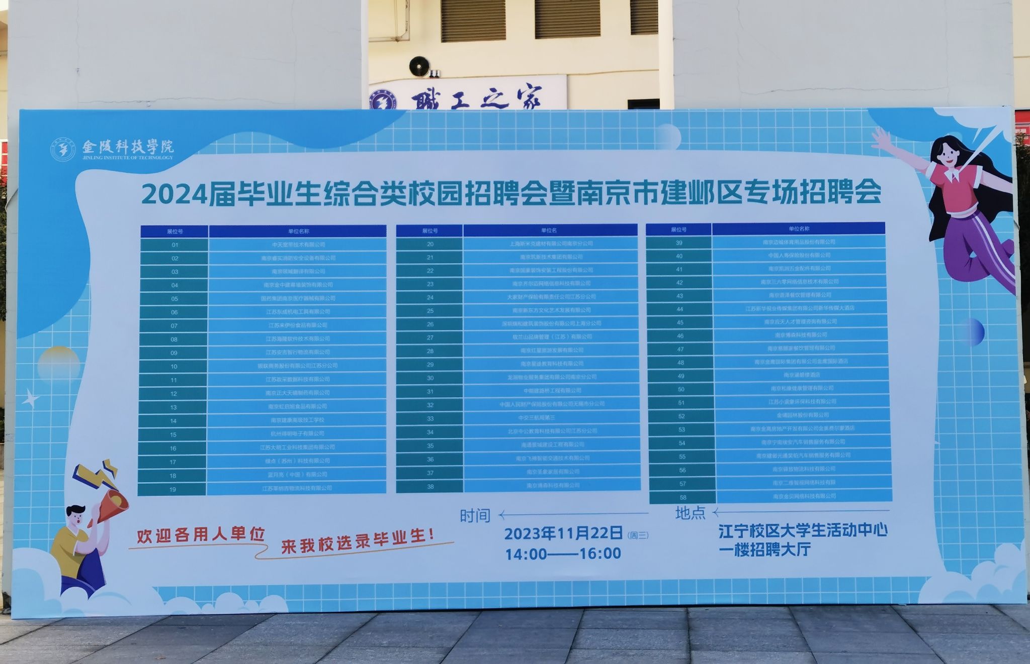 11月22日下午,我校在江宁校区大学生活动中心一楼招聘大厅举办了2024届毕业生 “综合类”校园招聘会暨南京市建邺区企业专场招聘会。