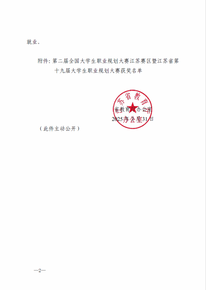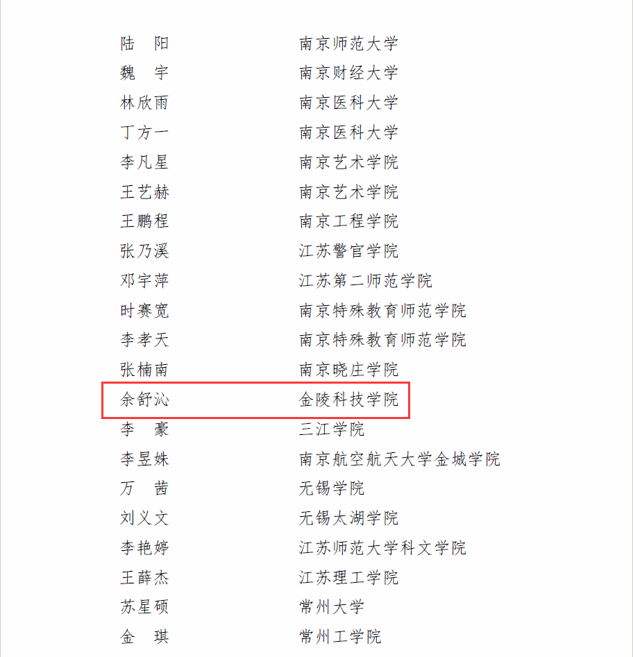 3月2日,在江苏省教育厅组织开展的第二届全国大学生职业规划大赛(江苏赛区)暨江苏省第十九届大学生职业规划大赛中,我校软件工程学院的余舒沁、建筑工程学院的涂立群同学分别获得就业赛道高教本科生组、成长赛道高教组铜奖。