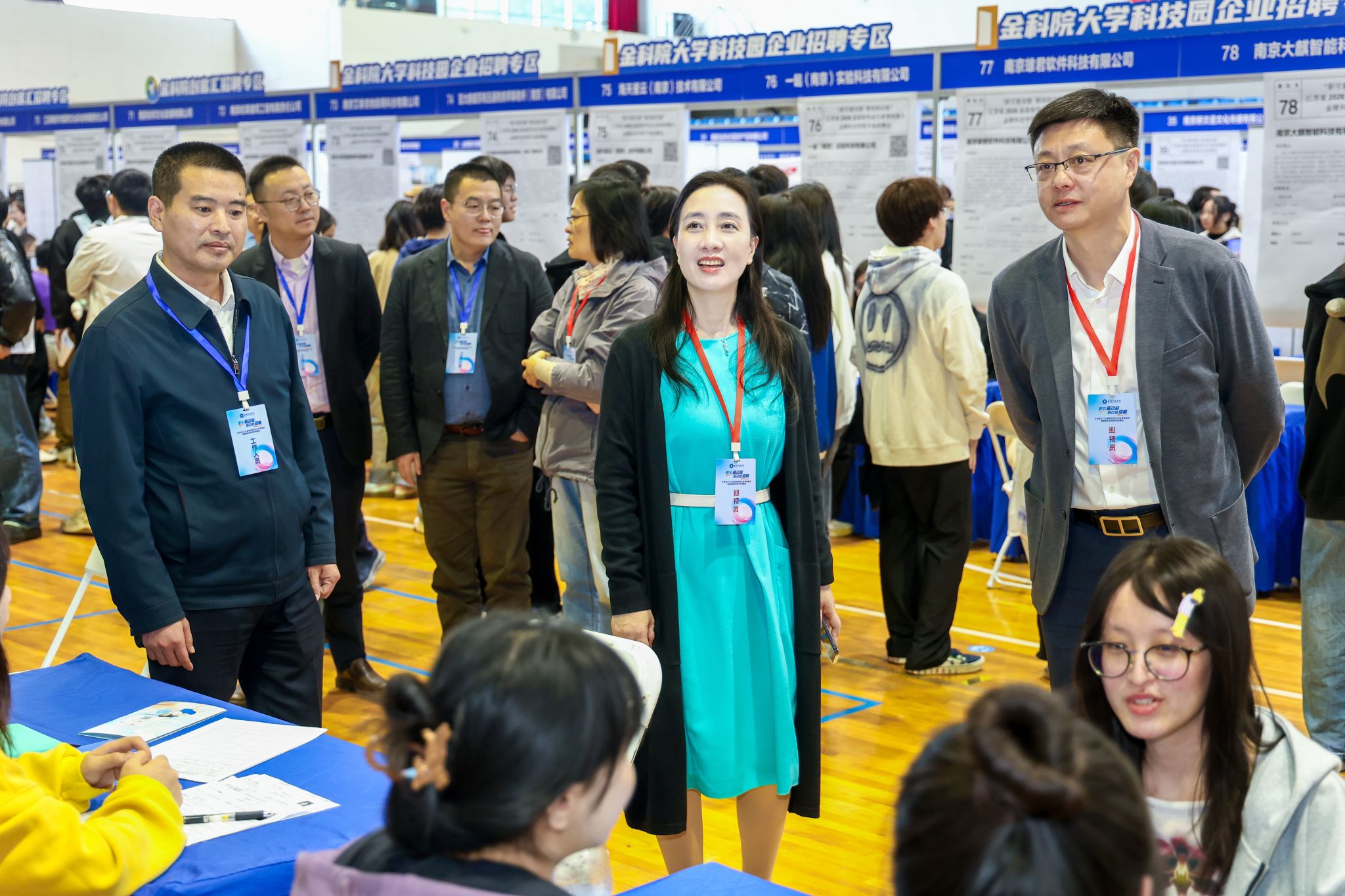 副校长顾晓燕、江苏省高校招生就业指导服务中心书记黄炜亲临现场指导工作,与参会用人单位代表及毕业生代表亲切交谈,详细了解招聘需求与求职情况。